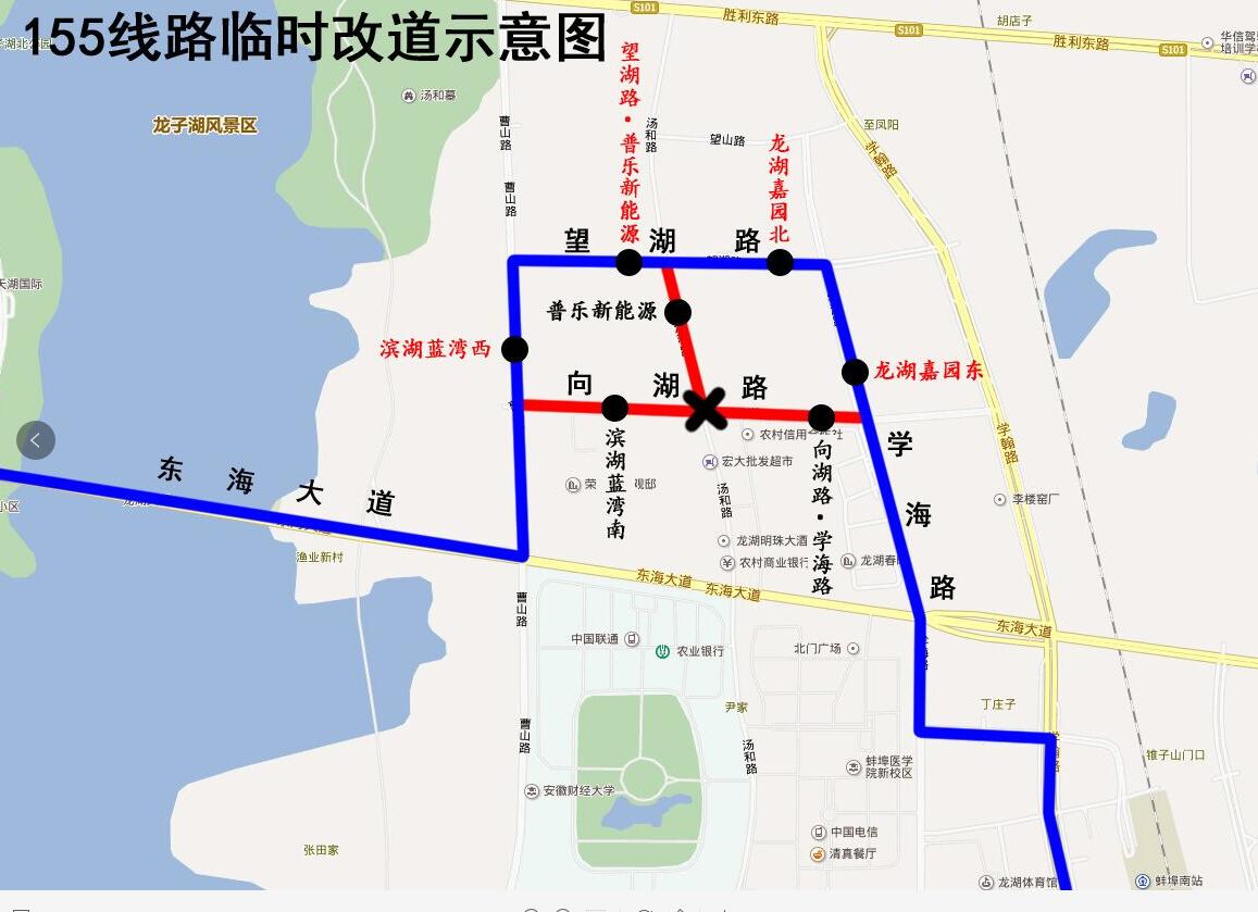 因汤和路与望湖路交叉口封闭施工结束,自5月21日起,公交155路来回双向改道为:原线路—东海大道—曹山路—望湖路—学海路—原线路。