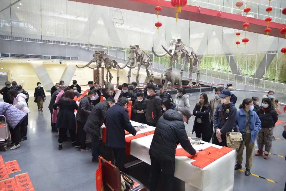 2月9日下午,蚌埠市博物馆邀请蚌埠市知名书法家现场书写春联免费赠予市民,为即将到来的新春节日营造喜庆的氛围。 记者 何沛