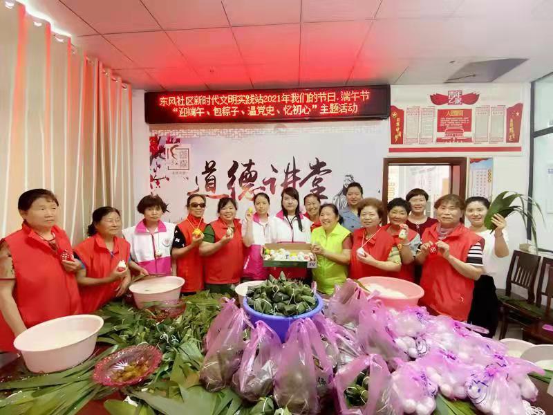 6月9日,东风社区新时代文明实践站组织党员群众开展“包粽子、忆初心”端午节主题活动,加强社区与居民之间的联系。