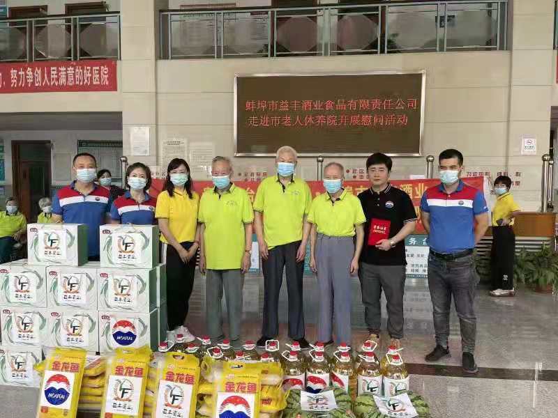 近日,蚌埠市益丰酒业公司一行来到市老人休养院开展慰问活动,给老人们带去粽子、鸭蛋、米、油等慰问品,为他们送去关爱和温暖。 任志伟 摄