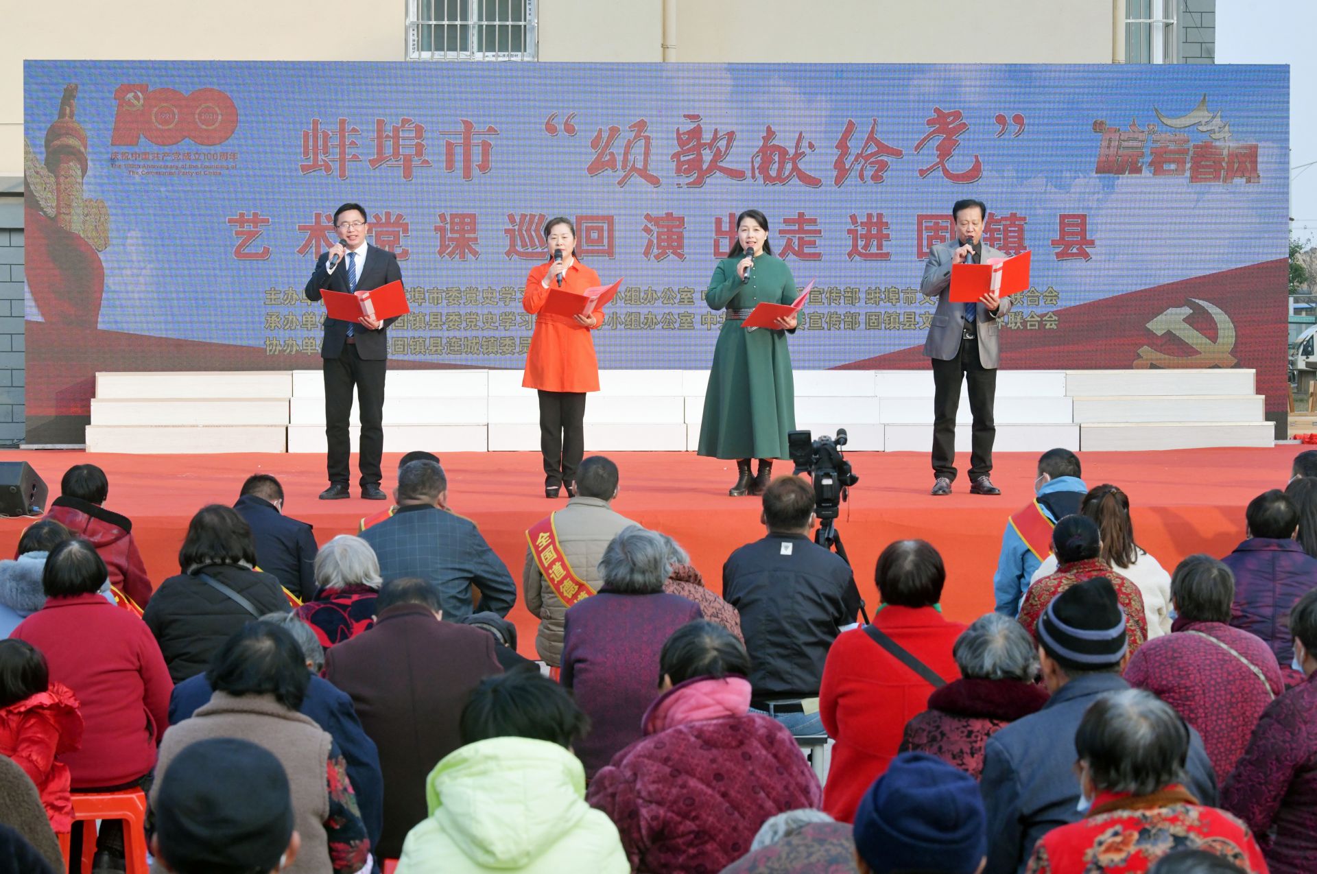 “艺术党课”进基层,百年党史入人心。12月9日下午,固镇县连城镇新时代文明实践广场乐声飞扬,人头攒动,由市委党史学习教育领导小组办公室、市委宣传部、市文联主办的“颂歌献给党”艺术党课首场基层巡演正在这里举行。