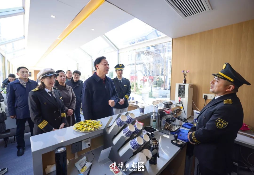 蚌埠发布客户端讯(融媒体记者 顾楷/文 陈昂/图)1月27日,春节前夕,市委书记黄晓武走进部分保供单位、文旅场所、派出所和商超,实地督导春节期间安全生产、市场保供、维稳安保等工作,并看望慰问一线工作人员。市领导郭家满、葛锐、乔树伟参加。