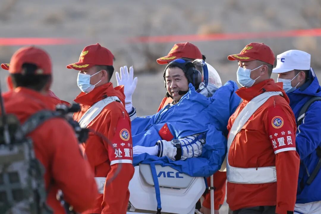 11月14日,载着神舟二十号航天员乘组的神舟二十一号载人飞船返回舱在东风着陆场成功着陆。这是航天员陈中瑞安全顺利出舱。新华社记者 李志鹏 摄