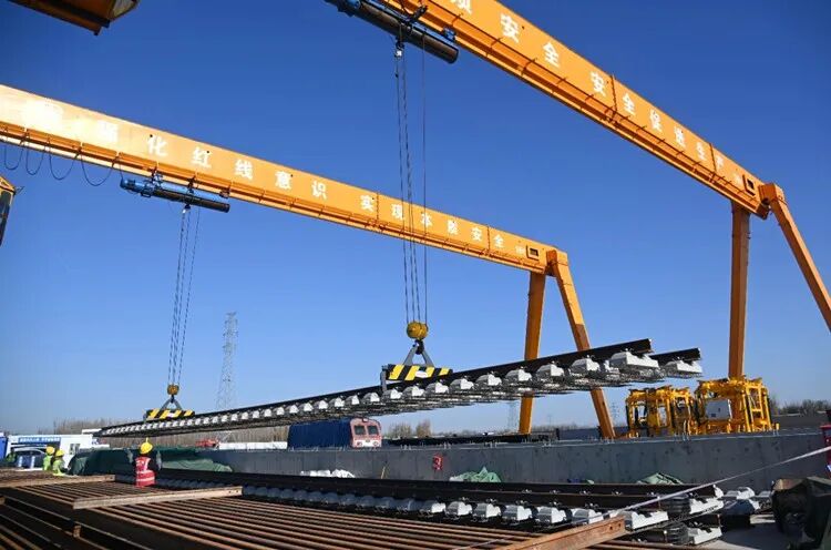11月19日上午,在北京轨道交通22号线高楼站至齐心庄站区间施工现场,随着施工人员将首节25米标准轨排平稳铺设在U型槽道床上,这条跨越京冀的轨道交通大动脉河北段正式进入轨道铺设阶段。