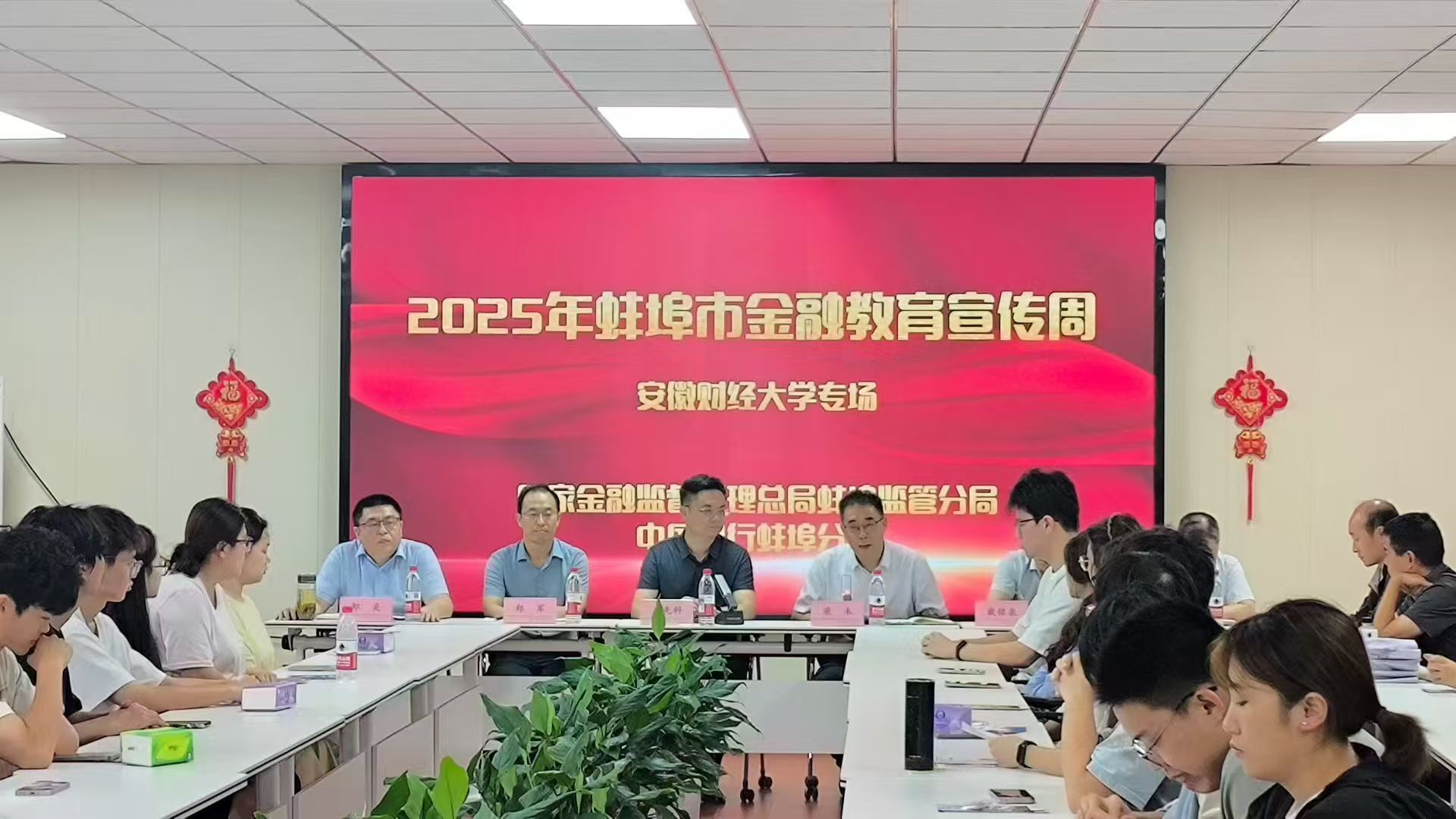 本报讯(融媒体记者朱爱华 通讯员 戴雨辰)9月17日,2025年蚌埠市金融教育宣传周安徽财经大学专场活动暨“大学生金融教育赋能计划”宣讲顺利开展。活动由国家金融监督管理总局蚌埠监管分局主办,蚌埠市银行业协会、中国银行蚌埠分行承办,旨在响应安徽省金融教育宣传周“保障金融权益 助力美好生活”号召,落实中央金融工作会议要求,提升高校学生金融风险防范意识与素养。