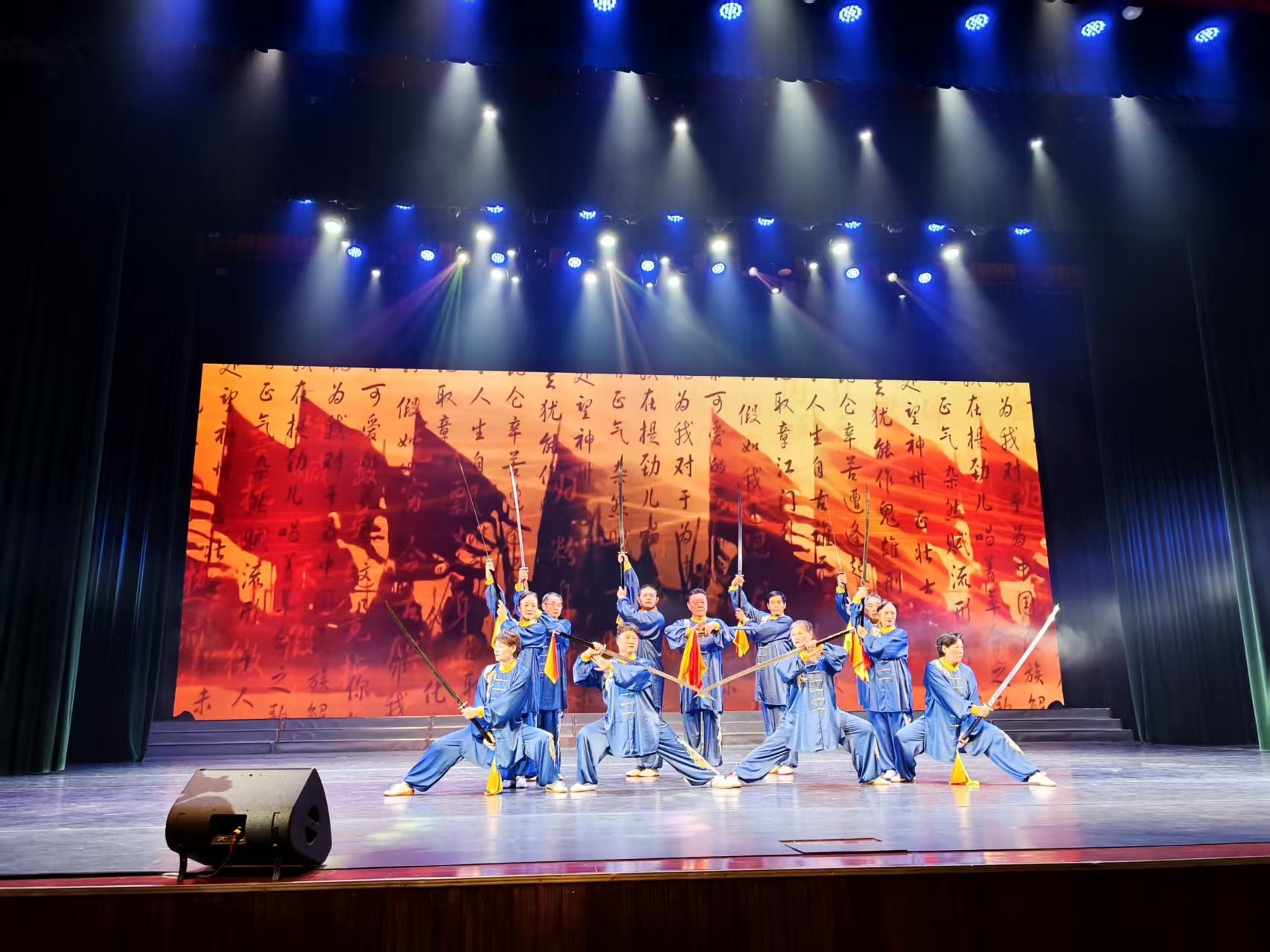 汇演现场气氛热烈,节目形式丰富多样。来自全市各县区的13支队伍、近260名参演者带来了器乐合奏、情景剧、武术、诗朗诵、舞蹈等精彩节目。器乐合奏《电影〈地道战〉组曲》引领观众重温抗战峥嵘岁月;反诈情景剧《假面亲情》以快板与群口相结合的方式,幽默而深刻地揭露养老金诈骗陷阱;武术表演《万胜苗刀百年传承》由78岁高龄非遗传承人领衔,展现了精湛技艺与矍铄精神;诗朗诵《特殊的情怀》深情讴歌了为国防事业无悔奉献的核工业职工;舞蹈《兰花赋》则以其优美舞姿,淋漓尽致地展现了花鼓灯技艺的热烈奔放。参演者平均年龄65岁以上,他们以饱满的精神状态和专业的舞台表现,赢得了台下阵阵掌声。