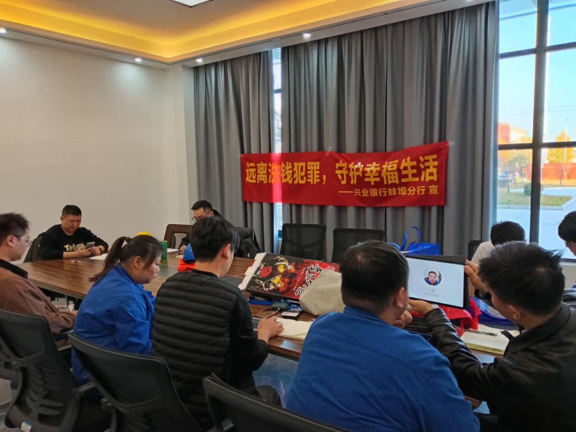 为提升社会公众对洗钱犯罪的认识,增强金融风险防范意识,近日,兴业银行蚌埠蚌山支行企金业务团队走进当地产业园区,开展了一场以“远离洗钱犯罪,守护幸福生活”为主题的反洗钱知识宣传活动。此次活动旨在通过普及反洗钱知识,引导企业员工树立法治观念,共同维护金融安全和社会稳定。