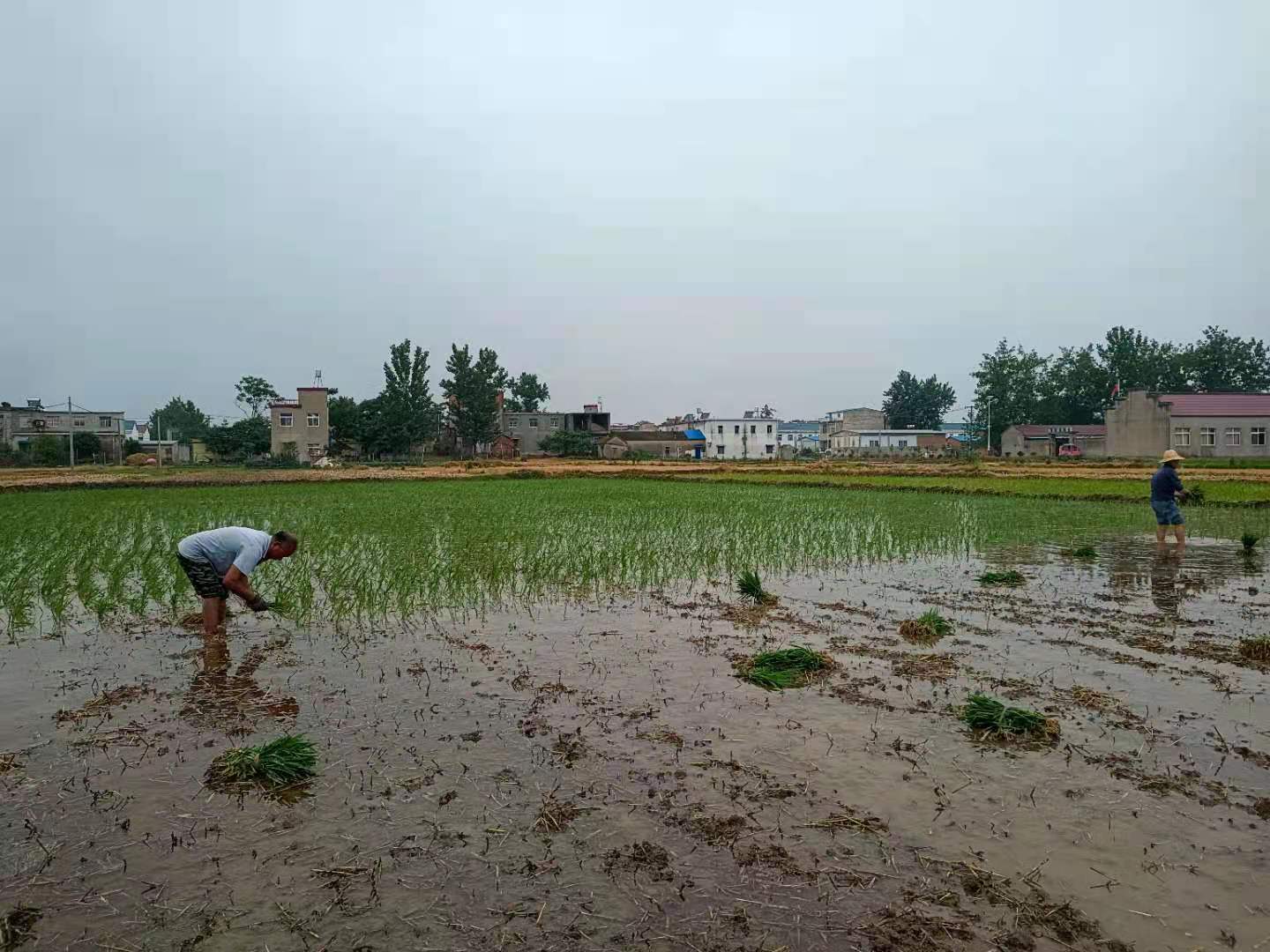 6月17日,淮上区沫河口镇曹顾张村,村民忙着移栽水稻秧苗。  徐建光 摄