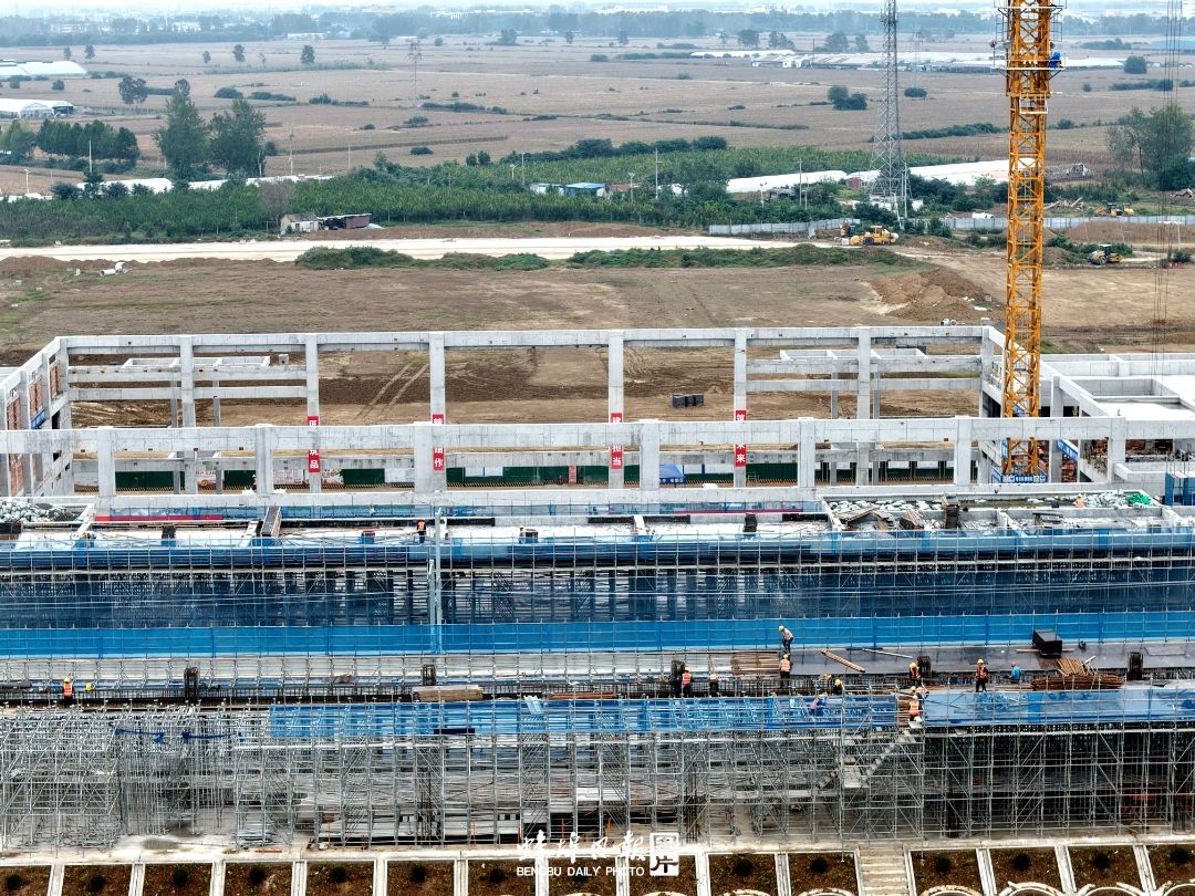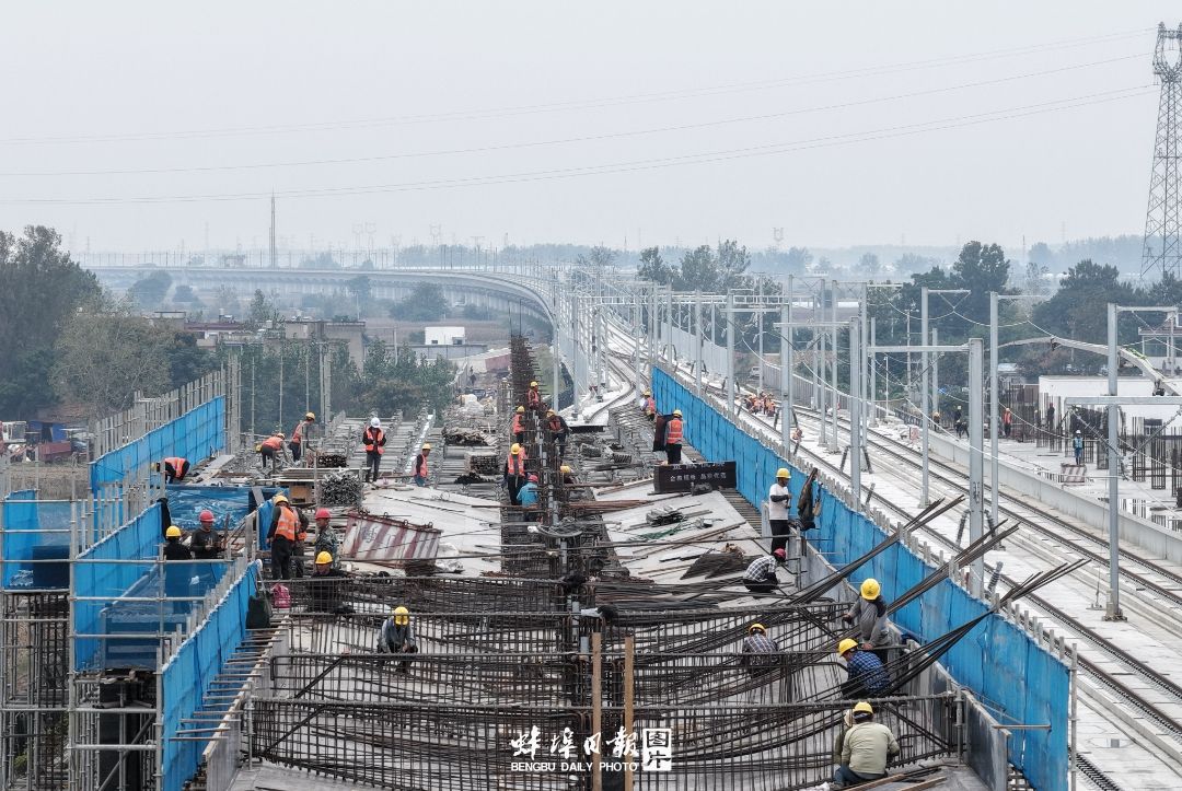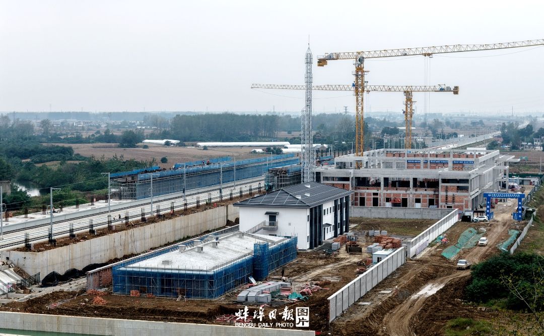 蚌埠发布客户端讯(融媒体记者 陈昂 通讯员 林玉龙)近日,淮宿蚌城际铁路固镇南站建设迎来关键节点。自 9 月 2 日实现站房混凝土主体结构封顶以来,项目已全面转入室内施工阶段,目前二次结构及砖砌体施工完成 30%,钢结构安装筹备工作同步推进,站台工程也按计划有序展开。预计今年年底完工,明年6月全线通车。