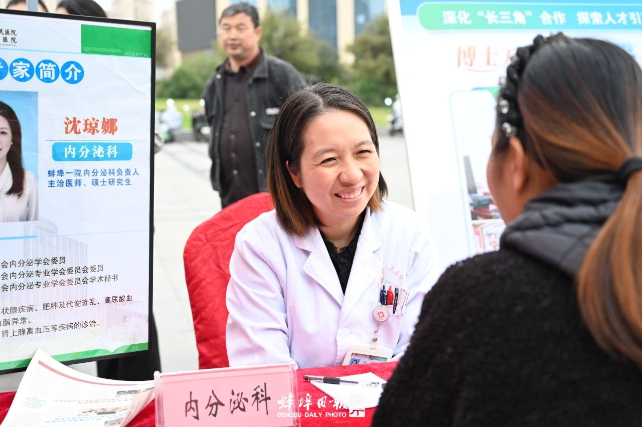 同步进行的义诊服务区从下午两点半至四点半始终人气爆棚。来自市一院、二院、三院、中医医院以及淮河社区卫生服务中心的医护人员,为过往市民提供了涵盖内科、外科、口腔科、眼科、中医科、康复科、治未病科等17个专科的免费健康咨询与基础检查。各家医院的特色专科齐聚一堂,让市民真切体验到了“家门口”的便捷与优质。