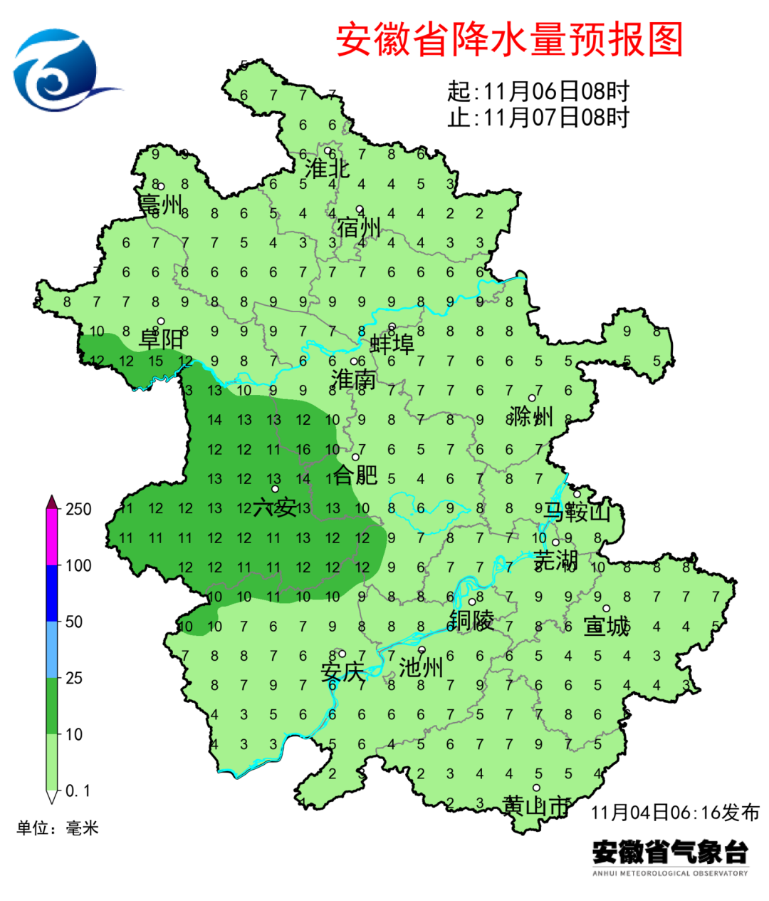 6日:全省阴天有小雨,其中江北部分地区中雨。