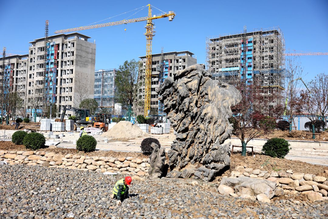 11月11日,记者在蚌埠自贸区体育公园项目B地块现场看到,园区道路硬化完成过半,绿化苗木种植已初具规模。同时,已完成景观石、戏水池等安置。据介绍,目前已完成B地块工程量的80%,施工正加大人力物力投入,进行年度目标冲刺。