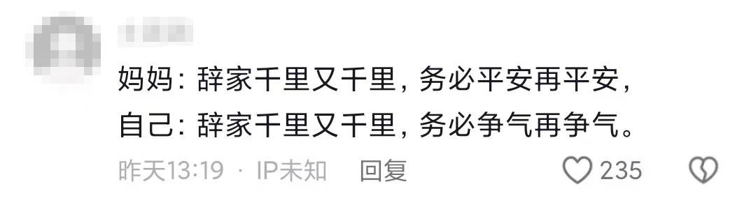 话题“辞家千里又千里,务必争气再争气”