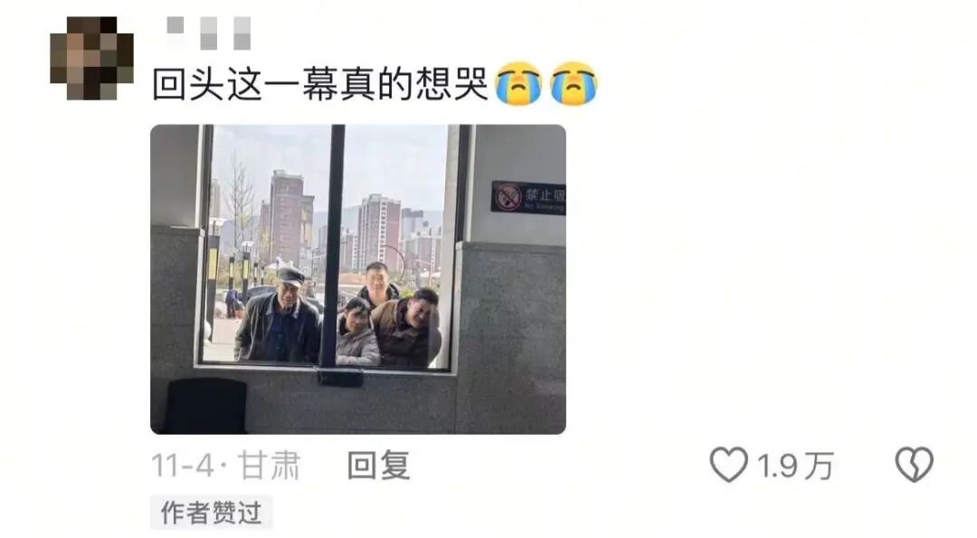 在高铁上看到父母在车站外