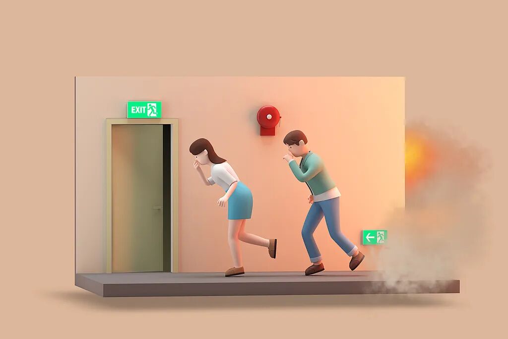 火灾初起阶段,若无烟雾应迅速快跑撤离现场。如烟气已到头部位置,应低姿弯腰,既能躲避烟气,也能看清逃生路线。如有条件可佩戴自滤式呼吸器。