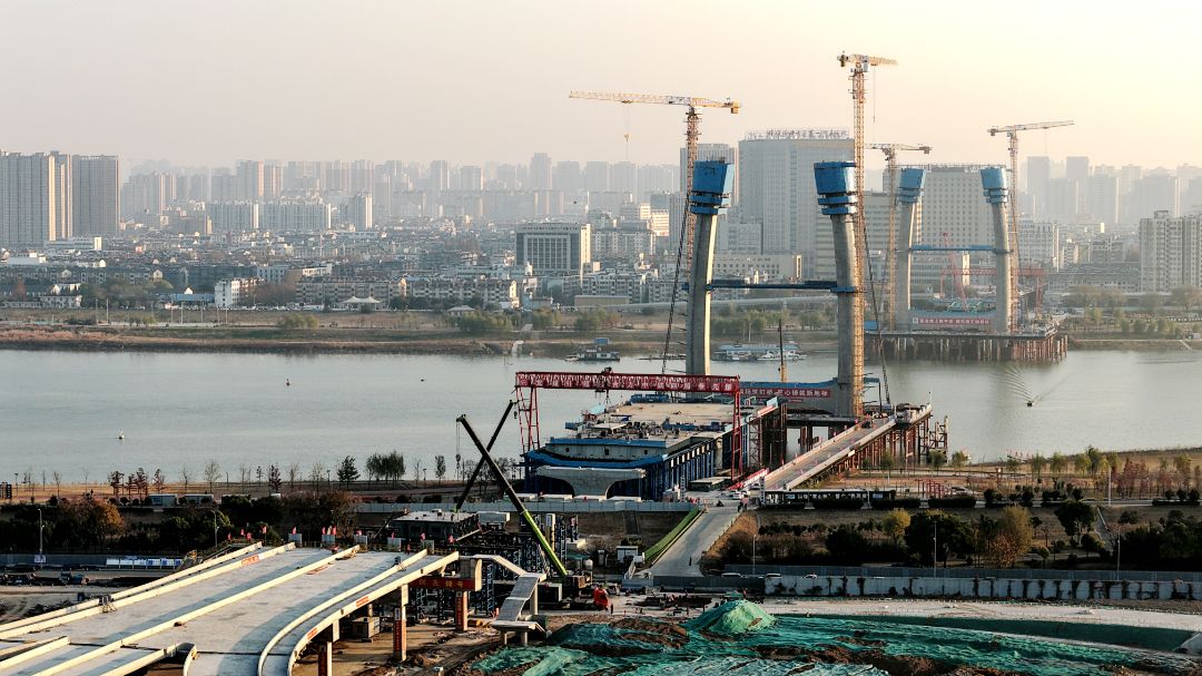 延安路大桥及接线工程北岸主线引桥及匝道桥开始连接
