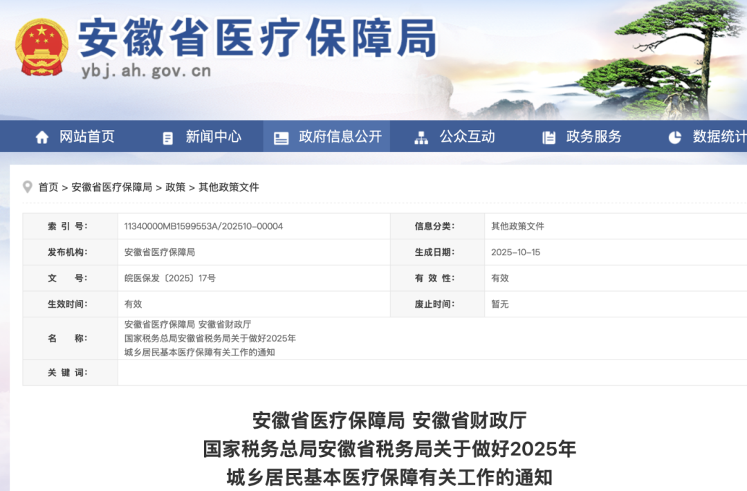 安徽发布最新通知:每人每年缴费400元!