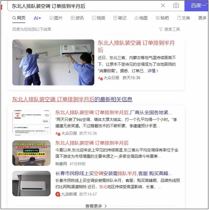 今天“东北人排队装空调”、“哈尔滨空调一机难求”冲上媒体热搜