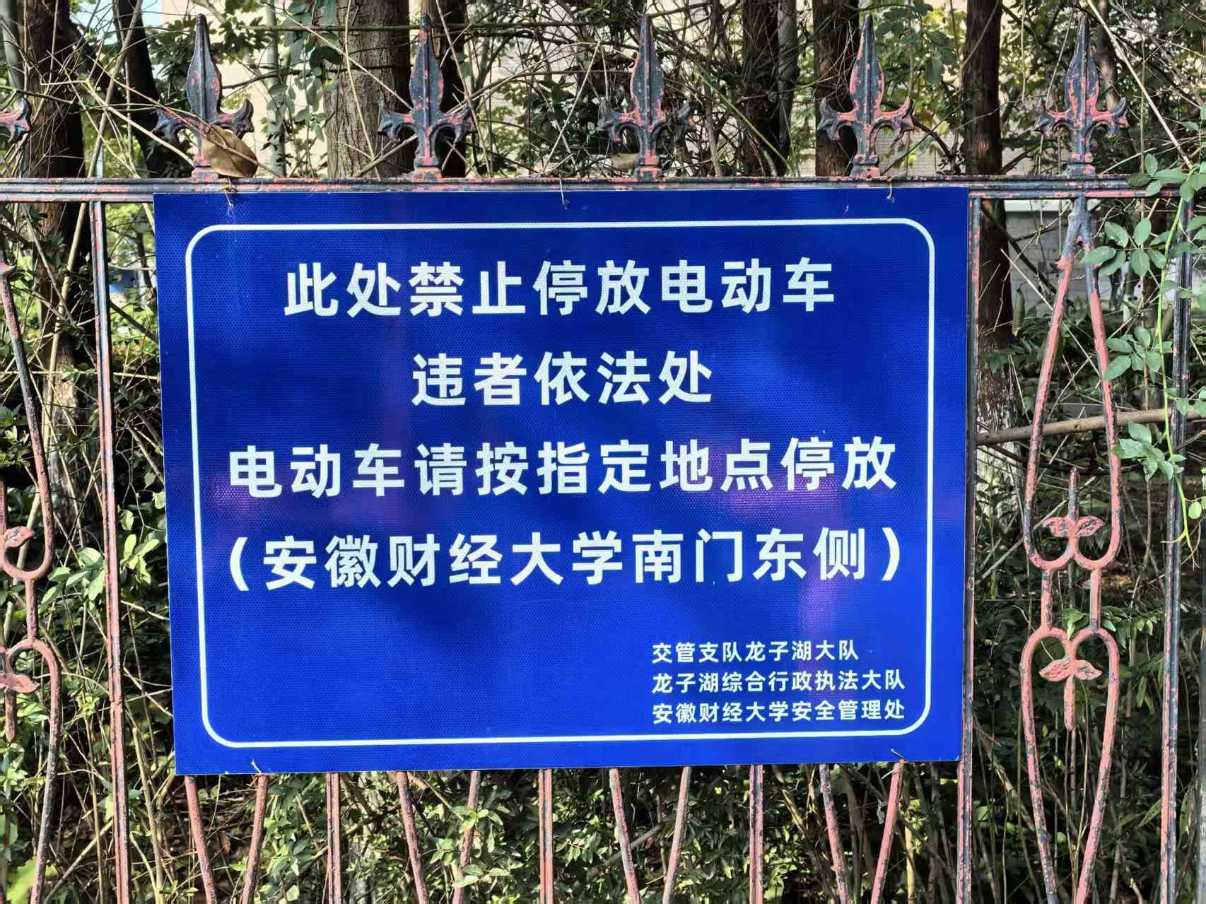为啃下这块“硬骨头”,龙子湖交管大队主动牵头,联合辖区城管综合执法大队、安徽财经大学构建“协同共治”格局,明确要求学校落实“门前三包”主体责任,提前通过校园微信班级群、公告栏推送规范停放通知,并在东门、南门安装醒目的禁停标志与指引牌,通过“宣传引导+联合执法+长效管控”为整治行动筑牢基础,为专项整治行动筑牢宣传基础。