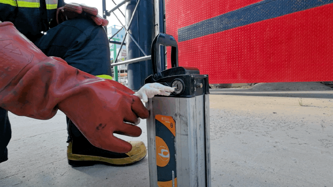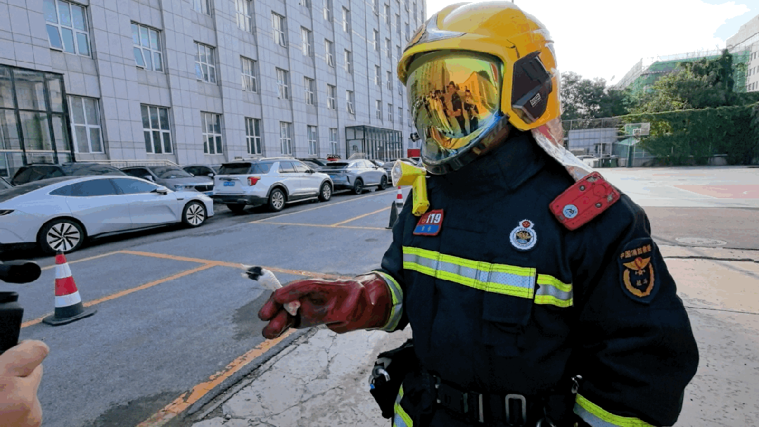 消防员找来一个48v的电动自行车电池,戴上绝缘手套,用一根鸡爪模拟人手,将一个圆形铁片固定在鸡爪上。