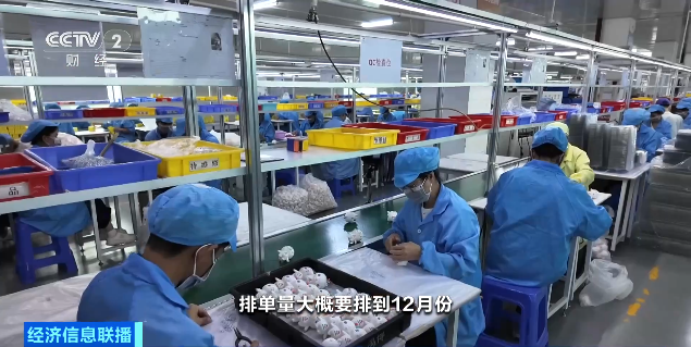 广东东莞某潮玩企业负责人 江新平:十五运的所有产品总共销售额已经达到过千万(元)了,排单量大概要排到12月份,工人正在24小时不停地生产。