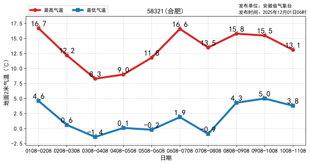 安徽省气象台预计,1日至3日全省平均气温降幅为6~8℃,局部9℃以上。