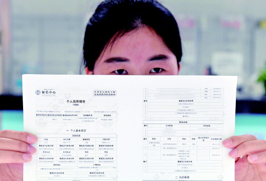 市民展示个人信用报告刷卡、网购、骑行共享单车,每时每刻你都在消费;借阅图书、朋友约会、一次承诺……,你的每个行为,每一次守约,都是你一生的信用积累。