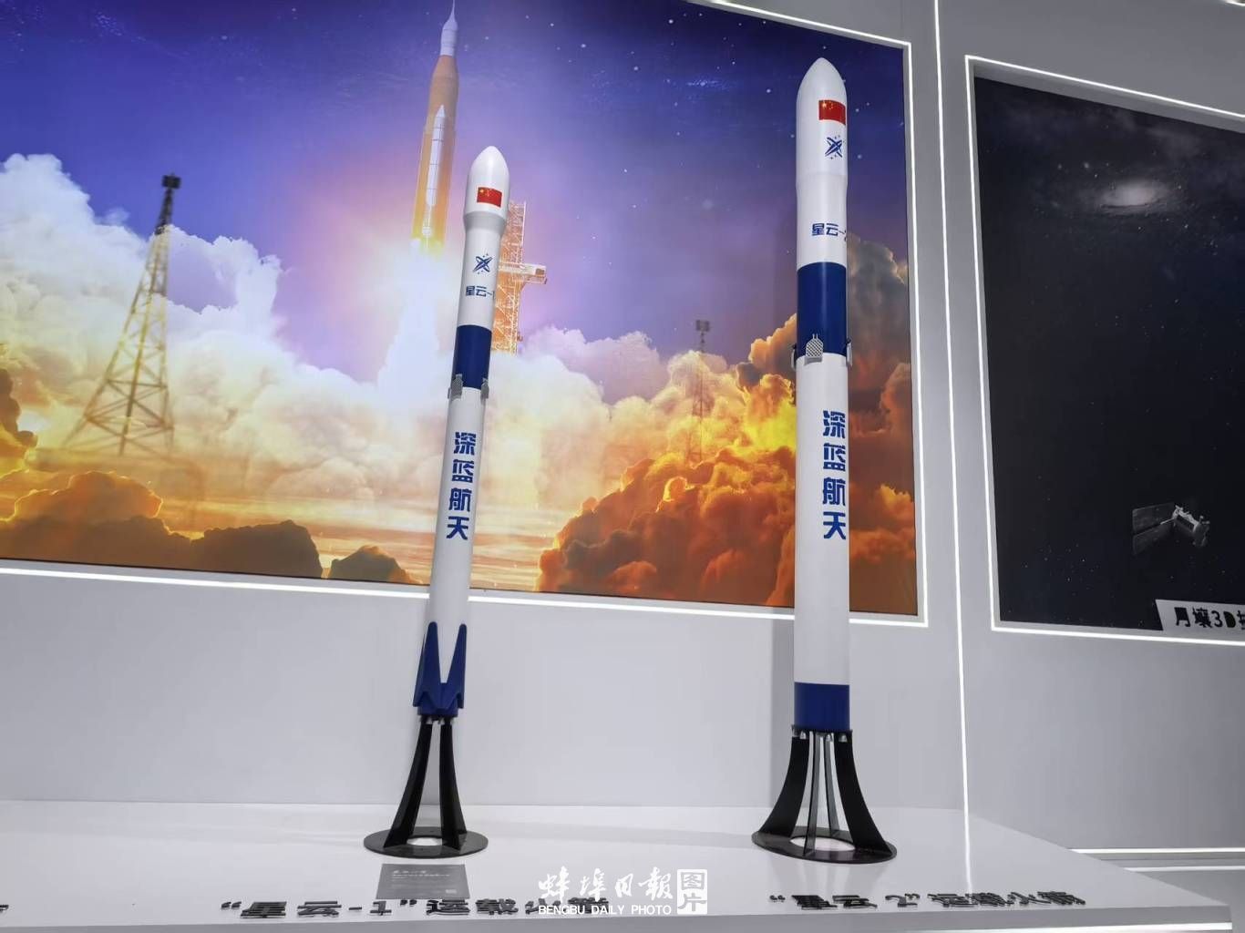 9月19日上午,记者来到合肥滨湖国际会展中心综合馆,看到各参展企业正在展厅内紧锣密鼓地进行布展,我市众多展品在各展区显著位置均有摆放。其中,深蓝太空航天科技(蚌埠)有限公司的“星云-1”“星云-2”运载火箭模型、安徽椭圆时空航天科技有限责任公司的“星池一号”卫星模型、安徽九州云箭航天技术有限公司的龙云发动机、安徽北方微电子研究院集团有限公司的智能传感系列产品、中电科思仪科技(安徽)有限公司的高、低轨卫星终端高效测试解决方案作为重大创新成果代表入围序厅展区。蚌埠广鼎科技集团有限公司的OLED移动AI数字人透明屏和星穹幻影交互屏、安徽中科米点传感器有限公司的机器人六维力传感器在装备展展区进行展览。安徽华鑫微纳集成电路有限公司的8英寸MEMS晶圆、安徽北方微电子研究院集团有限公司和安徽芯动联科微系统股份有限公司的MEMS智能传感器系列产品在电子信息展展区集中展示。安徽先导新材料有限公司的金属键合丝材料、安徽丰原生物技术股份有限公司的聚乳酸系列产品在材料展展厅内进行展览。此外,沃壹健康科技股份有限公司、浩中机械(蚌埠)有限公司、安徽中材新材料科技有限公司等企业的产品分别在消费品展、国际展等展区进行展示,李家喜等8位工艺美术师的10余件玉雕工艺美术作品参加工艺美术展。