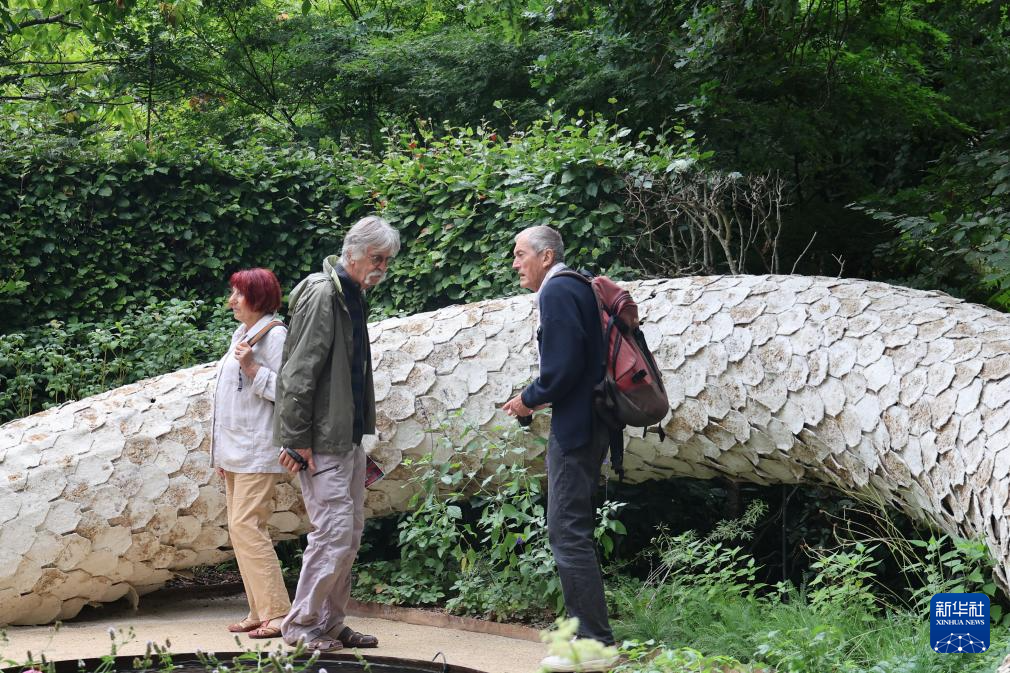 在法国卢瓦尔河谷肖蒙城堡的苍翠林地间,一座名为“白蛇园”的艺术花园正在悄然绽放:一条长达25米的蛇形雕塑,覆盖3500片可降解的菌丝体鳞甲,杭州白菊与法国薰衣草、中国牡丹与地中海鼠尾草环绕其周围……