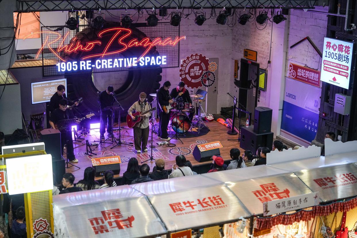 10月6日,游客在沈阳1905文化创意园内观看乐队演出。新华社记者 潘昱龙 摄