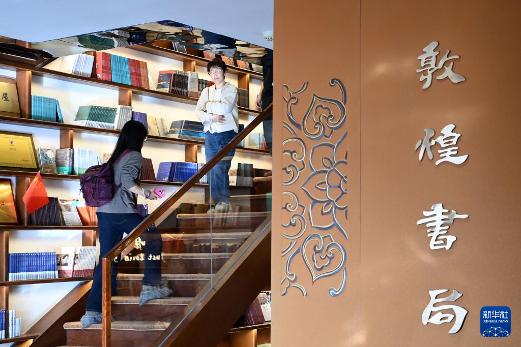 10月11日,游客在敦煌书局参观游览。新华社记者 范培珅 摄