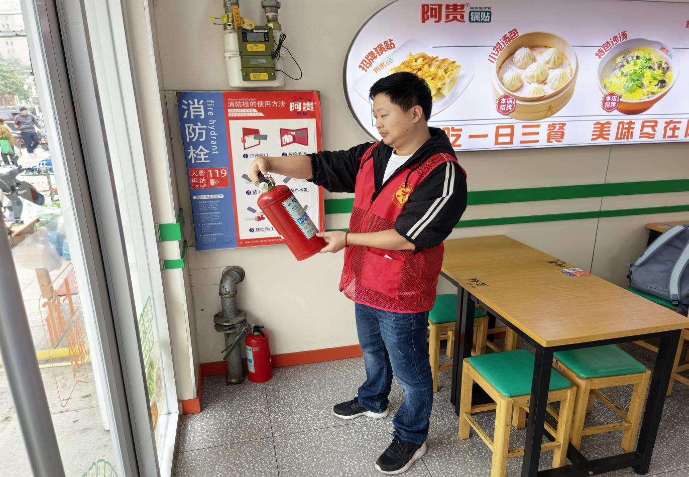 排查过程中,社区工作人员重点围绕消防安全、燃气使用、用电规范等关键环节开展检查并在餐饮商户后厨,逐一查看燃气罐年检标识、连接软管老化情况、检查消防器材是否在有效期内、疏散通道是否畅通,确保隐患闭环管理。同时,检查人员还向店铺负责人宣传了安全知识,强调了安全生产的重要性,引导商户定期开展内部安全自查。