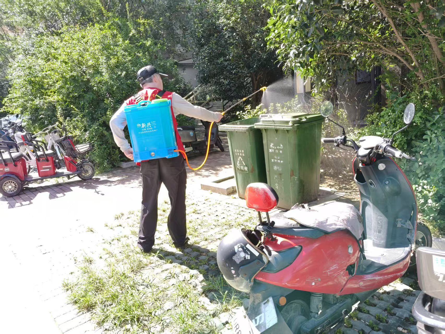 线下,社区工作人员、小区物业和党员志愿者每日对小区院落公共区域开展常态化消杀,对公共绿化带、楼道、垃圾站、排水沟、地下室等重点区域进行集中喷药消杀,并组织专人每日巡查并清除室外各类蚊虫滋生地,确保无卫生死角。