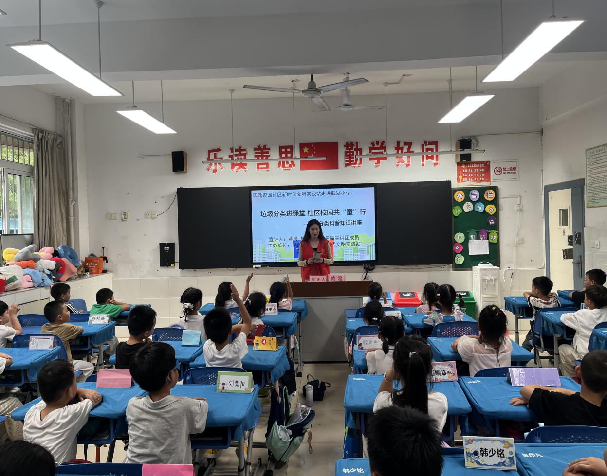 近日,民政家园社区新时代文明实践站走进戴湖小学,开展“垃圾分类进课堂社区校园共‘童’行”——垃圾分类科普知识讲座,向未成年人普及垃圾减量理念和垃圾分类方法,引导大家从自身做起,为创建美好清洁家园贡献力量。(黄嫚)