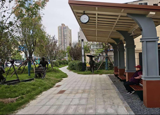 项目启动之初,街道书记率先组建“民意调研专班”,广开渠道广泛听取居民意见,通过积极上门征询、张贴告示、微信群交流等收集意见多达60余条。在此基础上,小区网格党支部积极搭建平台,协调业委会、物业企业、社区党员、居民代表等召开了“板凳座谈会”,从设计理念、空间利用、硬件提升等多方面不断优化完善改造方案。最终确定公园创新采用“文化+生态”双核设计理念,一方面以火车记忆廊架、主题雕塑小品传承城市文脉,另一方面通过透水铺装、微地形打造海绵城市单元,让公园设计既贴合群众需求,又实现生态与人文的共生共融。