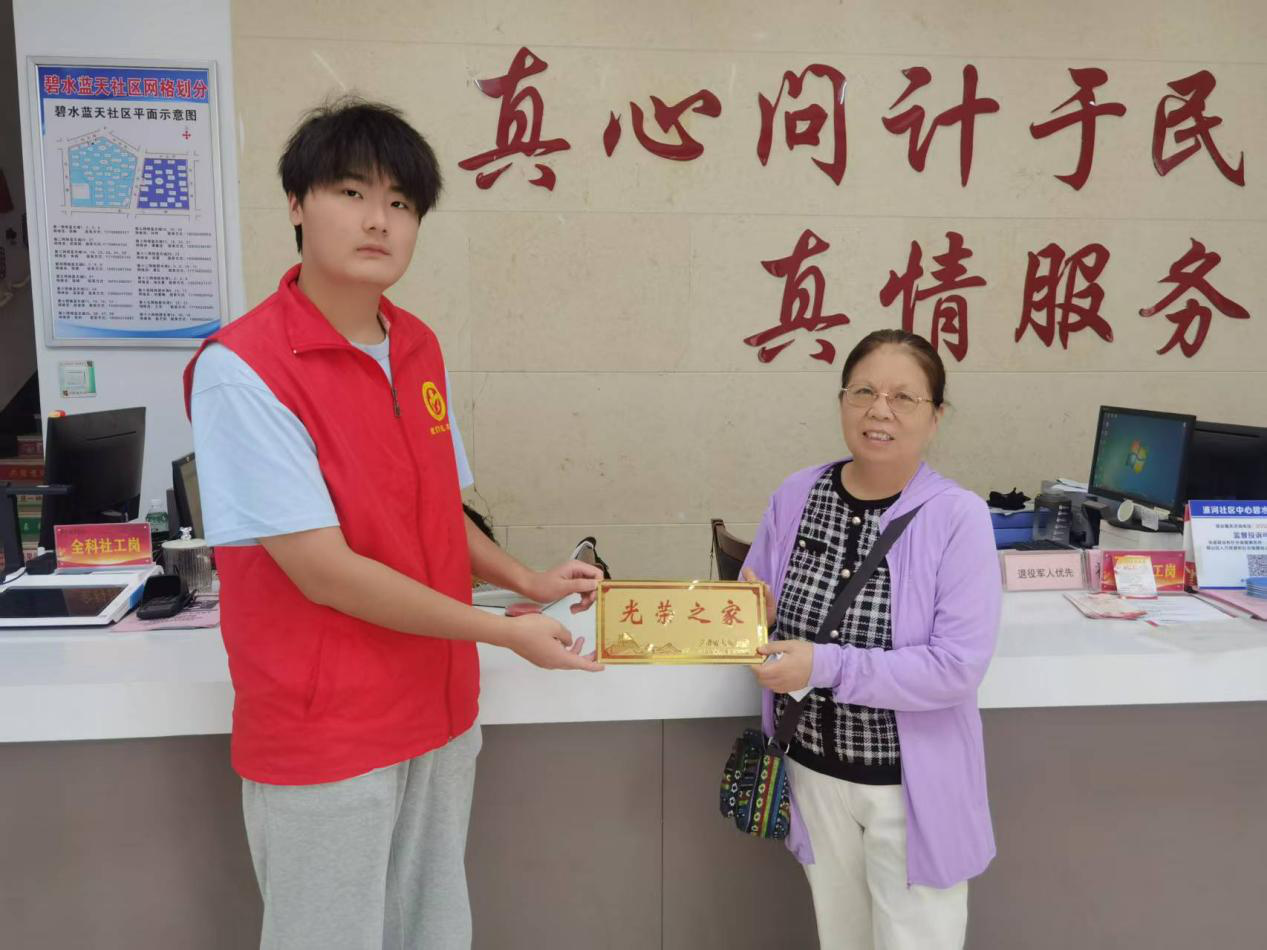 碧水蓝天社区:为退役军人家属发放光荣牌