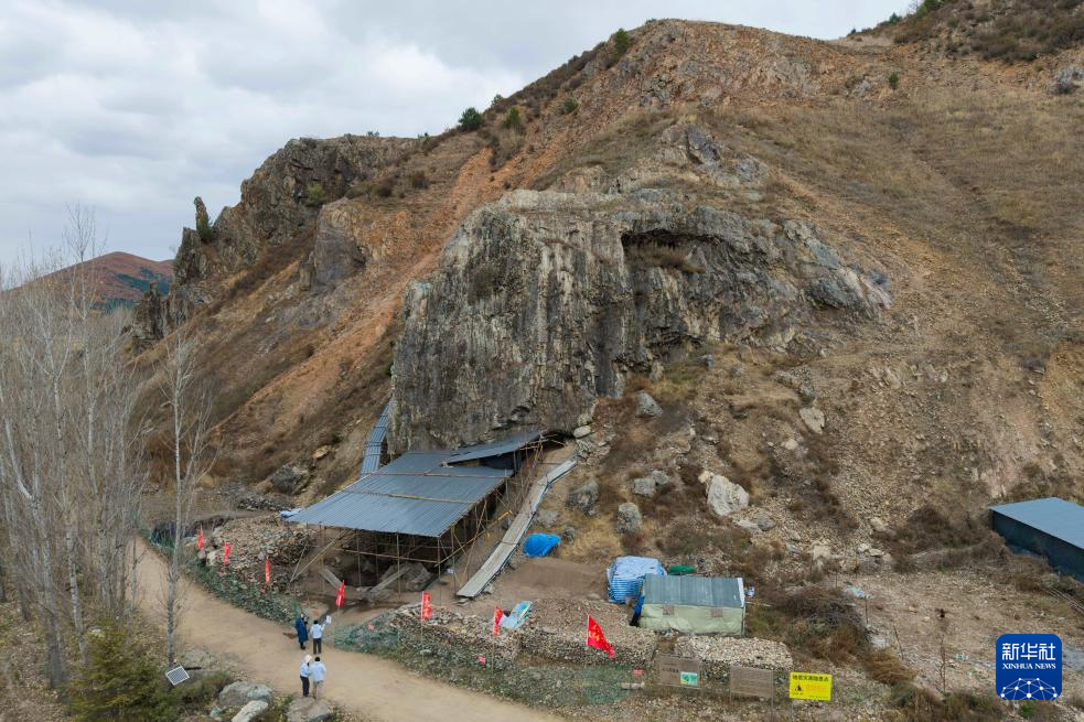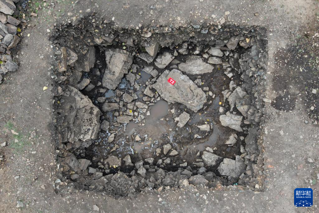 这是10月20日拍摄的位于黑龙江省海林市石河村的石人洞遗址的一处发掘区(无人机照片)。