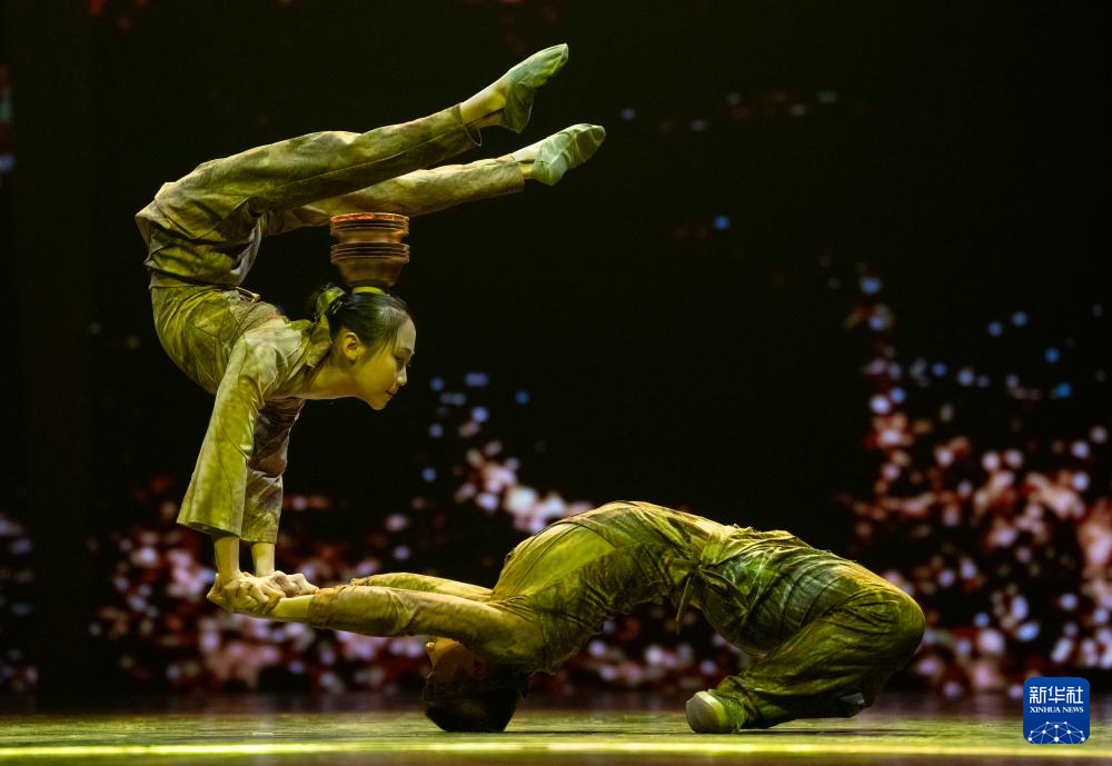 10月25日,在北京二七剧场举行的“艺苑撷英——2025年全国优秀青年艺术人才展演”上,广州市杂技艺术剧院有限责任公司演员表演杂技《炽爱情舞——双人转毯》。