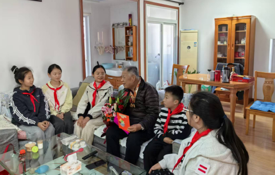近日,第一社区退役军人服务站精心组织了一场温暖的慰问活动,带领铁路第三小学的少先队员代表们,前往抗美援朝老兵晏金岭家中,向老英雄致以崇高的敬意和真挚的祝福。