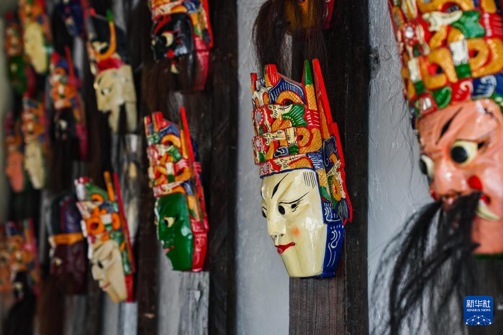 这是10月24日在贵州安顺天龙屯堡古镇拍摄的地戏面具。