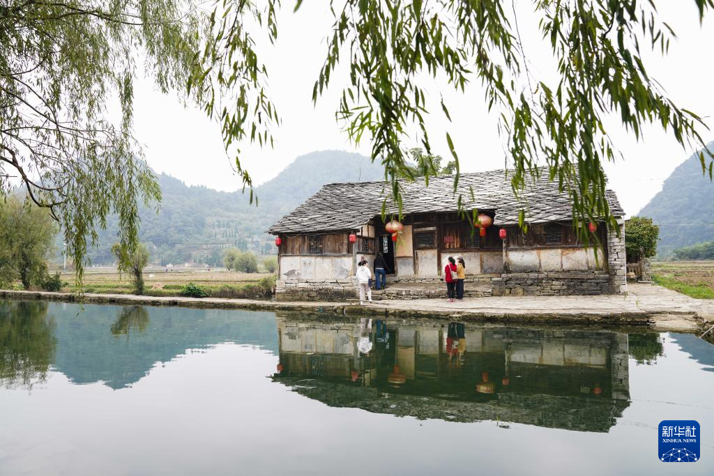 10月24日,游客在贵州安顺鲍家屯村参观。