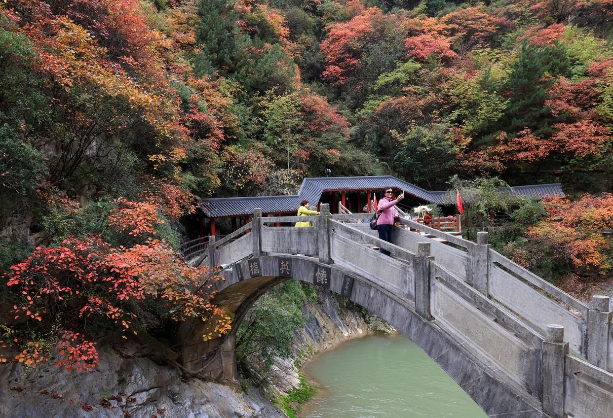 11月1日,游客在甘肃省陇南市成县西狭颂风景区欣赏秋日景色。新华社发(冉创昌 摄)