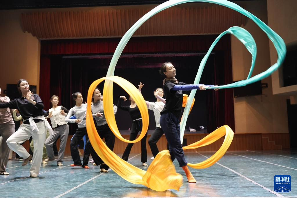 甘肃省歌舞剧院舞蹈演员在剧院排练厅排练新版《丝路花雨》(11月3日摄)。新华社记者 陈斌 摄