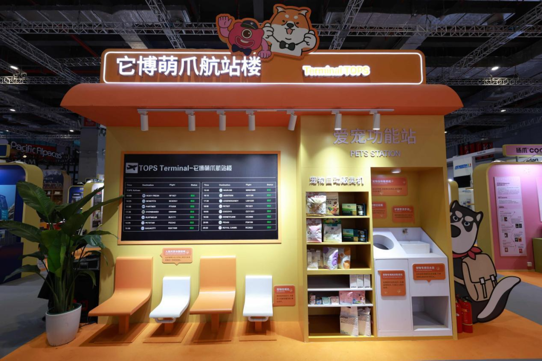 在“它博萌爪航站楼”宠物专区,这里接待你的是“猫猫机长”和“狗狗机长”,还有各种宠物周边消费品展出,简直是沉浸式养宠体验!