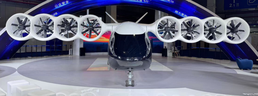 走进展馆,一进门就能看到全球首发的全尺寸倾转涵道翼电动垂直起降飞行器。它的机翼很有特点,远看就像“一排发动机”组合在一起。这款可广泛应用于多样化场景的“空中专车”,未来可以全面延展人们的“一小时生活半径”。