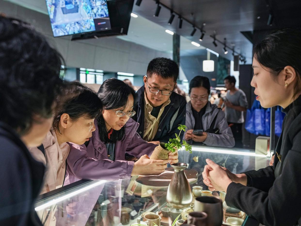 旅客在位于成都东站的三星堆博物馆与铁路部门联名文创专区商店内选购文创产品(11月3日摄)。新华社发(费思童摄)