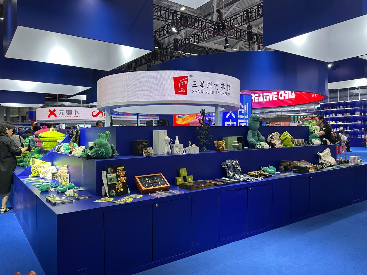 三星堆博物馆文创展区亮相第二十一届中国(深圳)国际文化产业博览交易会(5月22日摄)。新华社发