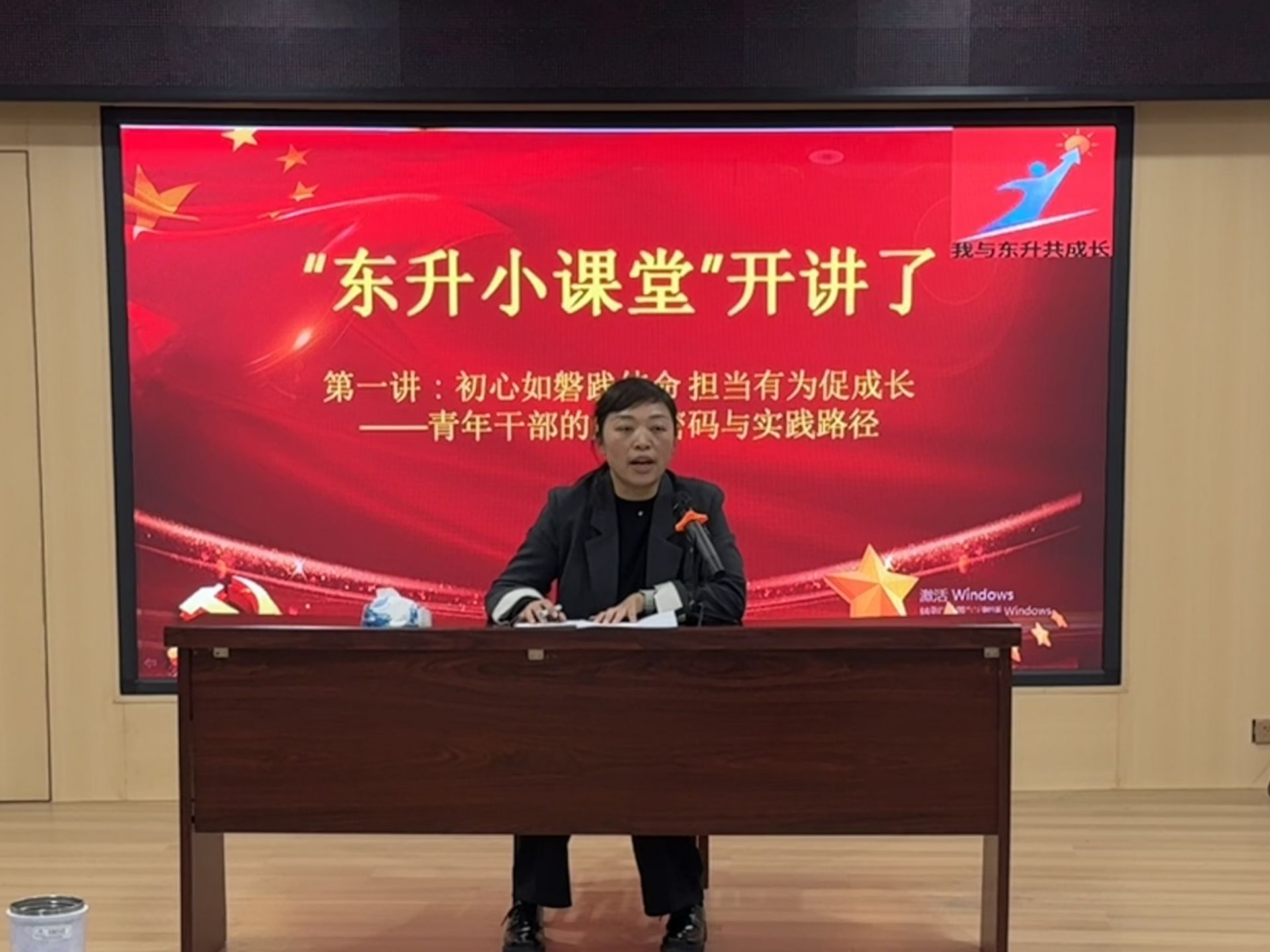 演讲结束后,东升小课堂“我与东升共成长”第一讲如期开讲。街道党工委书记以“初心如磐践使命担当有为促成长——青年干部的成长密码与实践路径”为主题,结合自身工作经历与街道发展实际,为年轻干部传经送宝。陈书记强调,青年干部的成长,关键在于以“学”固本,强化理论武装,把稳思想之舵;核心在以“思”强能,深化规律认识,破解实践难题;根本在以“勤”笃行,矢志担当奋斗,创造过硬实绩。