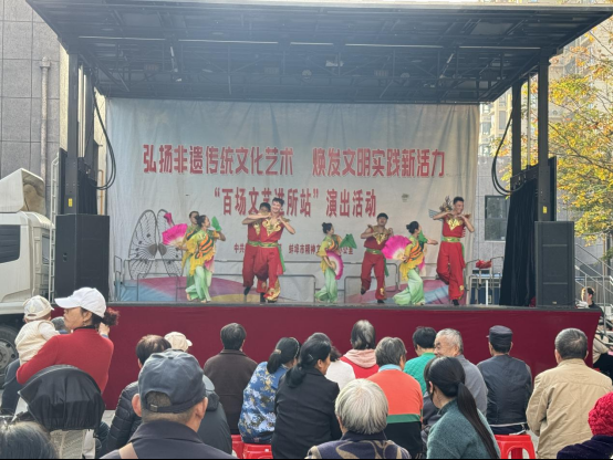 为丰富居民精神文化生活,弘扬中华优秀传统文化,注入文明实践新动能,近日,沈圩社区新时代文明实践站在玉龙湖畔小区举办了“弘扬非遗传统文化艺术焕发文明实践新活力”暨“百场文艺进所站演出在热烈奔放的国家级非遗《安徽花鼓灯》中拉开序幕。翻飞的花扇与演员们轻盈灵动的舞步,瞬间点燃了现场气氛,让居民们直观感受到了传统艺术的独特魅力。随后,节目轮番上演,精彩纷呈。