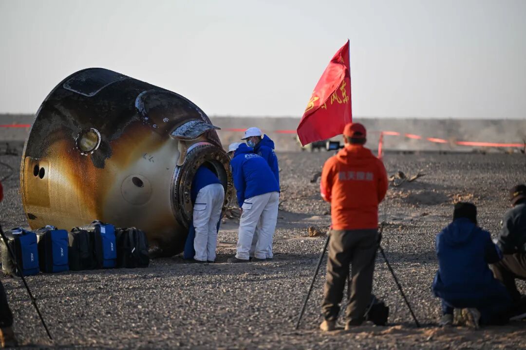 11月14日,载着神舟二十号航天员乘组的神舟二十一号载人飞船返回舱在东风着陆场成功着陆。新华社记者 李志鹏 摄
